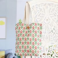 Handcrafted Cotton Tote Bag with Floral Pattern in Red 'Strawberry Orchard'