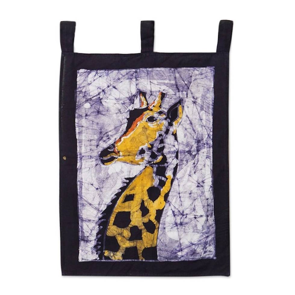 Handcrafted Cotton Wall Hanging of Giraffe in Yellow Hues 'Elegant Savanna' Item ID: 2671804247