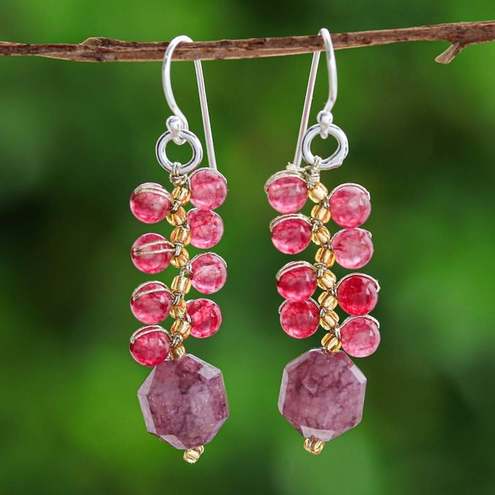 Handcrafted Cranberry-Inspired Glass Beaded Dangle Earrings 'Cranberries' Item ID: 2671796833