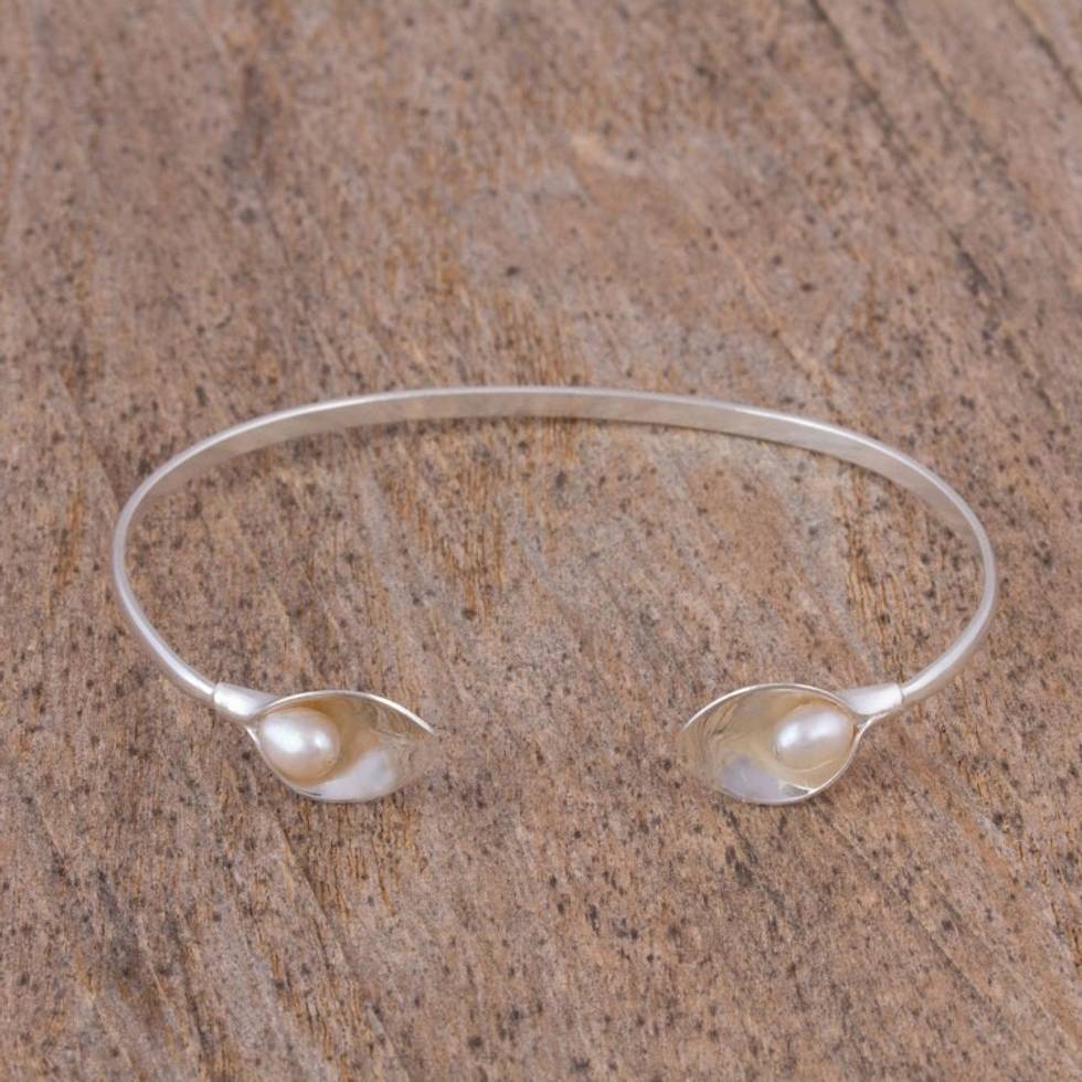 Handcrafted Cultured Pearl Cuff Bracelet from Mexico 'Purity and Elegance' Item ID: 2669931653