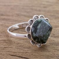 Handcrafted Dark Green Jade and Silver Floral Ring 'Dark Sunflower' Item ID: 2671780423