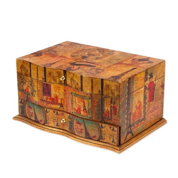 Handcrafted Decoupage Jewellery Box with Mirror and Drawer 'France in Mexico' Item ID: 2671808982