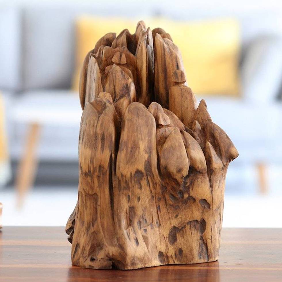 Handcrafted Eco-Friendly Haldu Wood Sculpture from India 'Reverence to Nature' Item ID: 2676666061