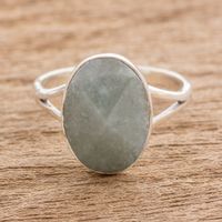 Handcrafted Faceted Jade Oval Sterling Silver Cocktail Ring 'Facet Fixation' Item ID: 2669933222