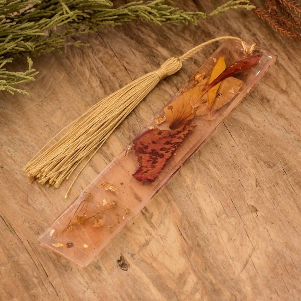 Handcrafted Floral Brown Resin Bookmark with Nylon Tassel 'Autumn Realm' Item ID: 2671770989