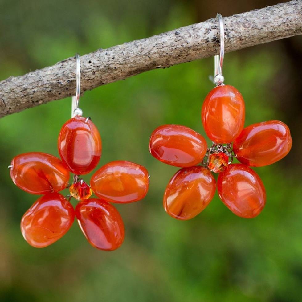 Handcrafted Floral Carnelian Earrings 'Mystic Daisy' Item ID: 2671802970