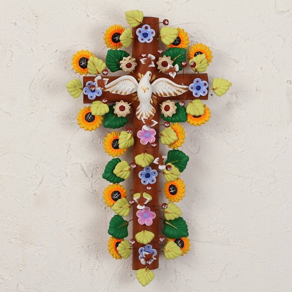 Handcrafted Floral Ceramic Wall Cross from Mexico 'Cross of Faith' Item ID: 2671808925