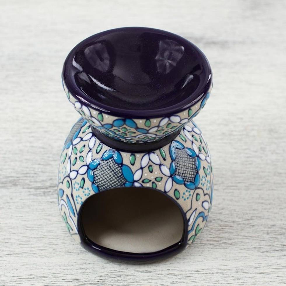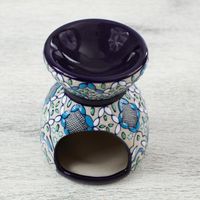 Handcrafted Floral Geometric Ceramic Oil Warmer 'Guanajuato Blue' Item ID: 2669897906