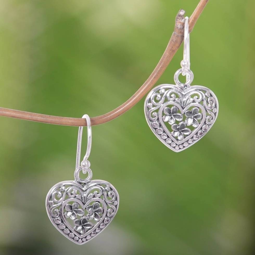 Handcrafted Floral Heart Earrings in Sterling Silver 'Romantic Frangipani' Item ID: 2671702463