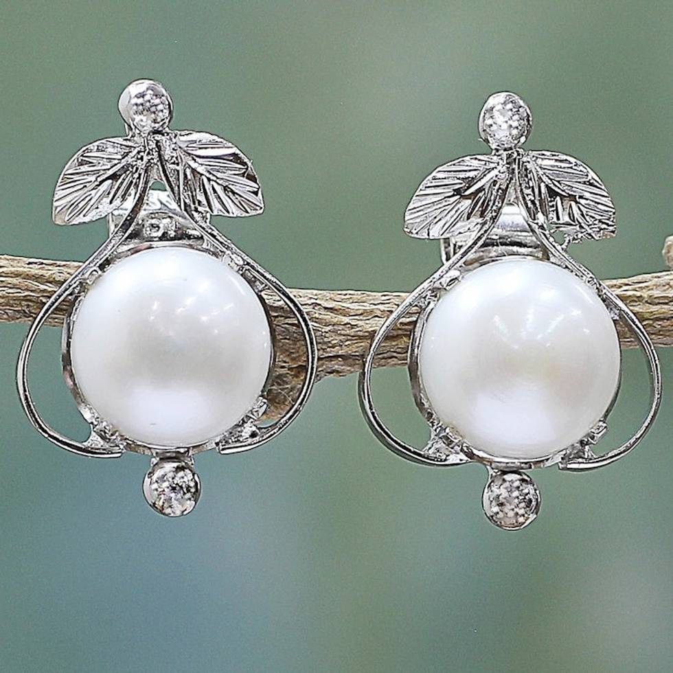 Handcrafted Floral Pearl and Sterling Silver Earrings 'Perfect Purity' Item ID: 2671794564