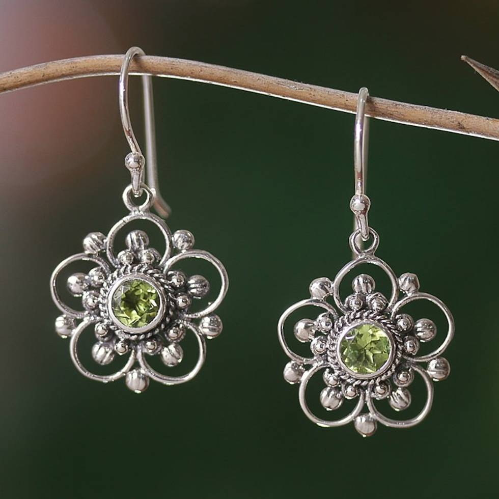 Handcrafted Floral Peridot Dangle Earrings 'Nature's Gift' Item ID: 2669920854
