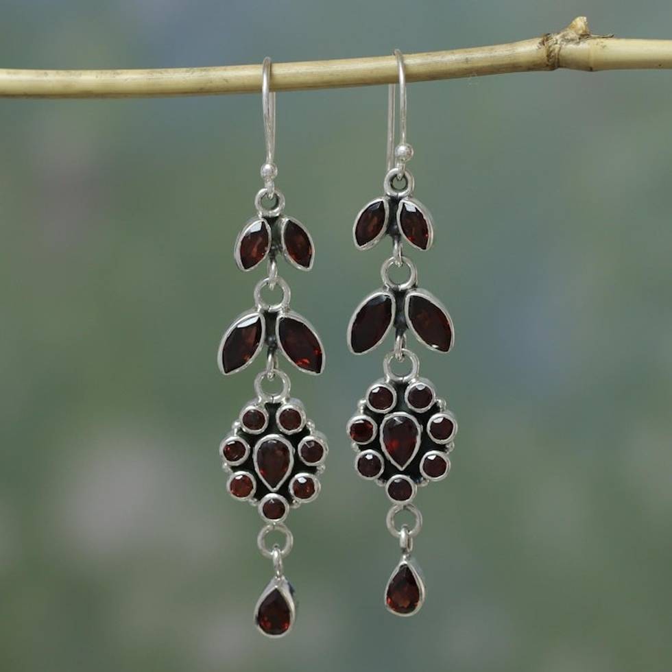 Handcrafted Floral Sterling Silver and Garnet Earrings 'Red Rose' Item ID: 2669923899