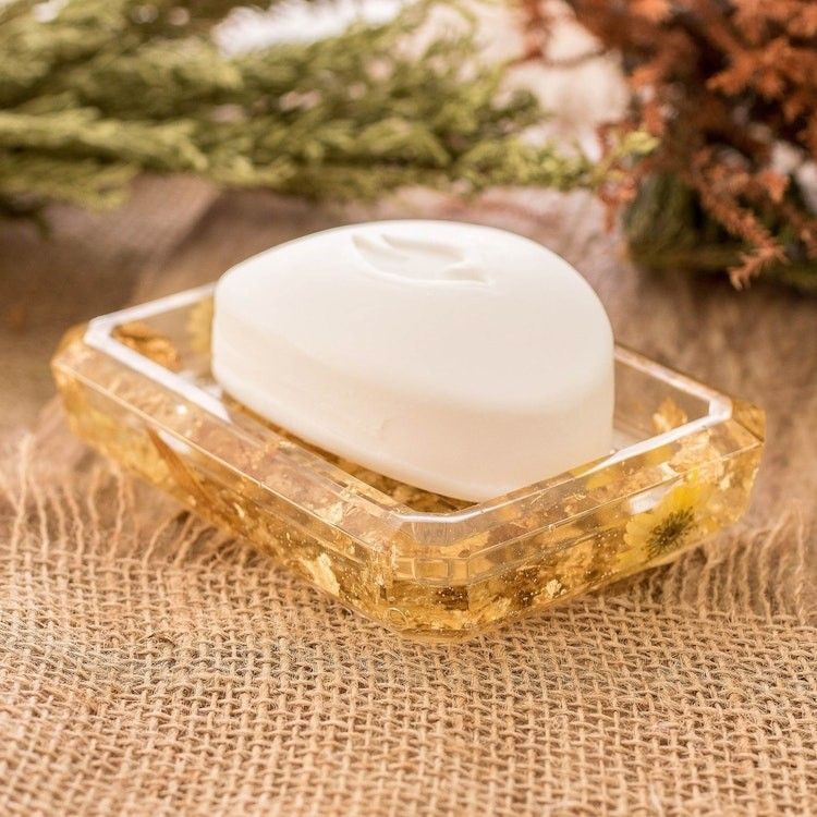 Handcrafted Floral Yellowish-Clear-Toned Resin Soap Dish 'Prosperity Bath' Item ID: 2671769300