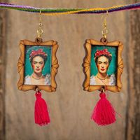 Handcrafted Frida Kahlo Image Wood Frame Dangle Earrings 'Frida's Strength' Item ID: 2669926832