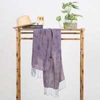 Handcrafted Fringed Batik Silk Shawl in Iris from Bali 'Ceplok Temple in Iris' Item ID: 2671734373