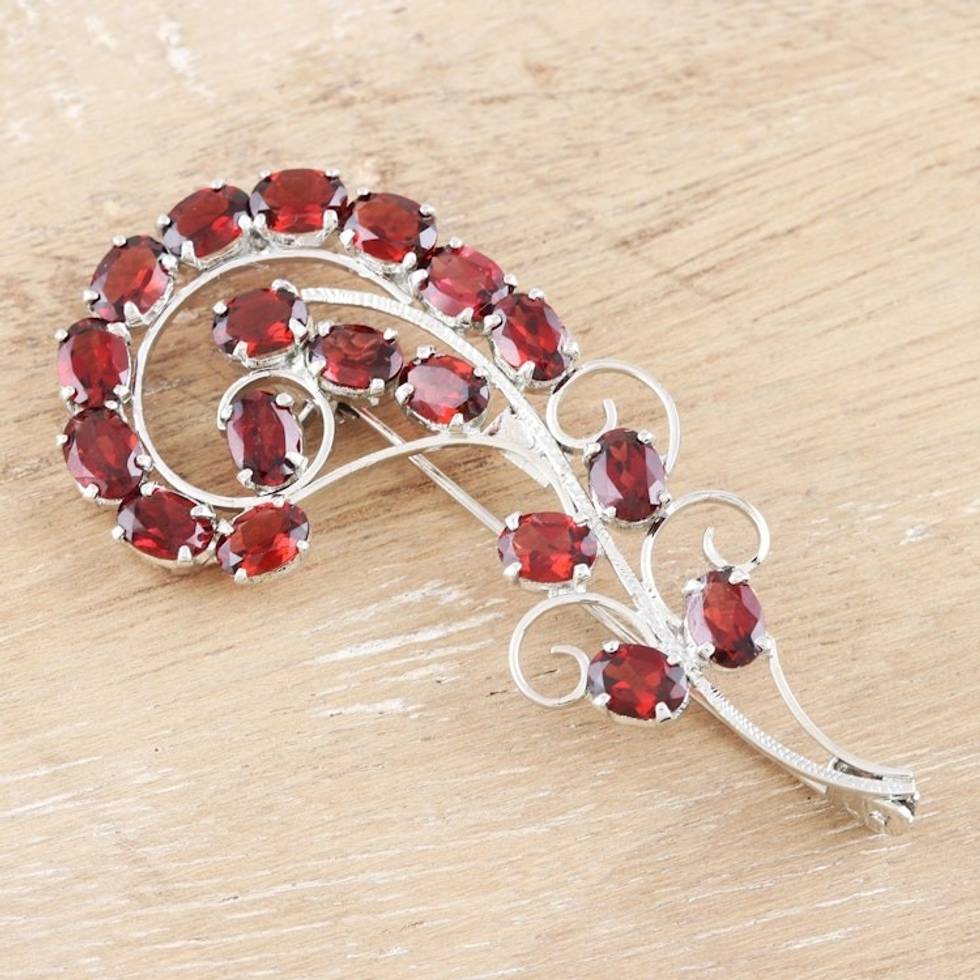 Handcrafted Garnet and Sterling Silver Brooch 'Crimson Paisley' Item ID: 2671788620