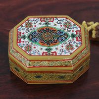 "An oblong octagon shape adds a glamorous aura to Niyaz's newest design. Inspired by palatial complexes and stunning gardens, the Indian artisan embellishes this kail wood decorative box with a papier mache finish. After polishing the item for a smooth surface, Niyaz paints diverse floral and leafy motifs by hand in a colorful palette. As the final touch, the artisan lines the interior with a velvet textile."