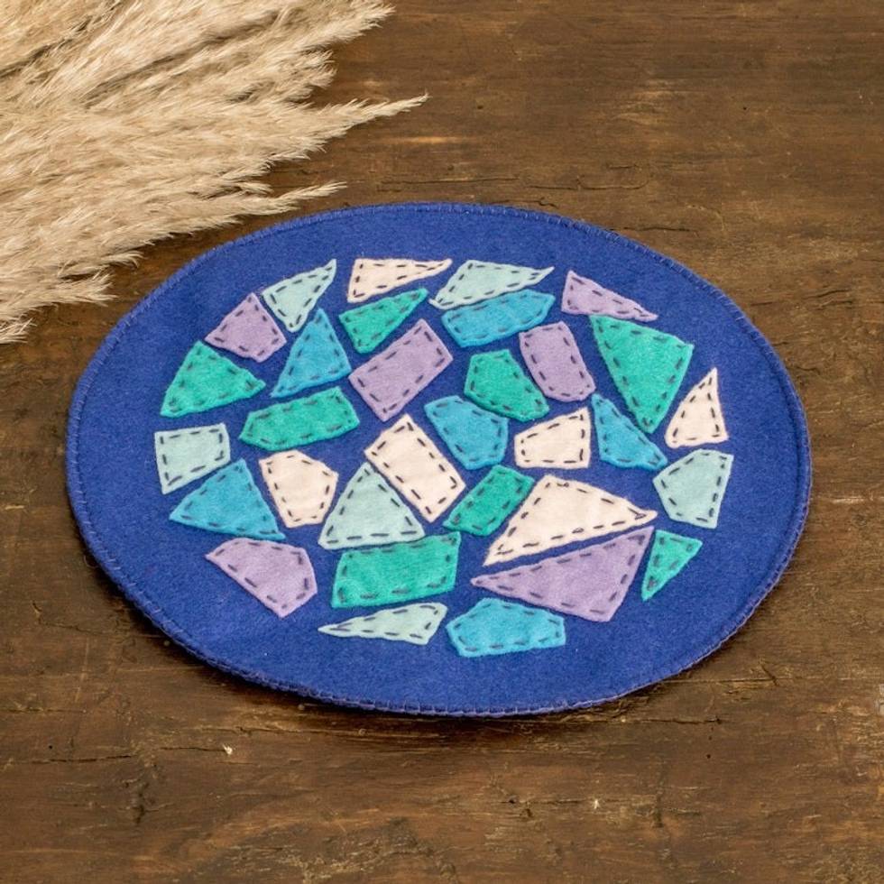 Handcrafted Geometric Round Blue and Purple Felt Doily 'Magical Fragments' Item ID: 2671771469