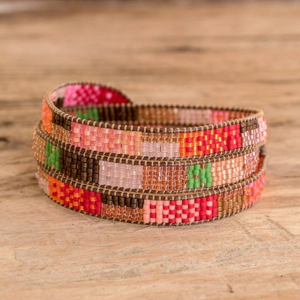 Handcrafted Glass Beaded Wrap Bracelet from Guatemala 'Geometric Innovation' Item ID: 2671772460