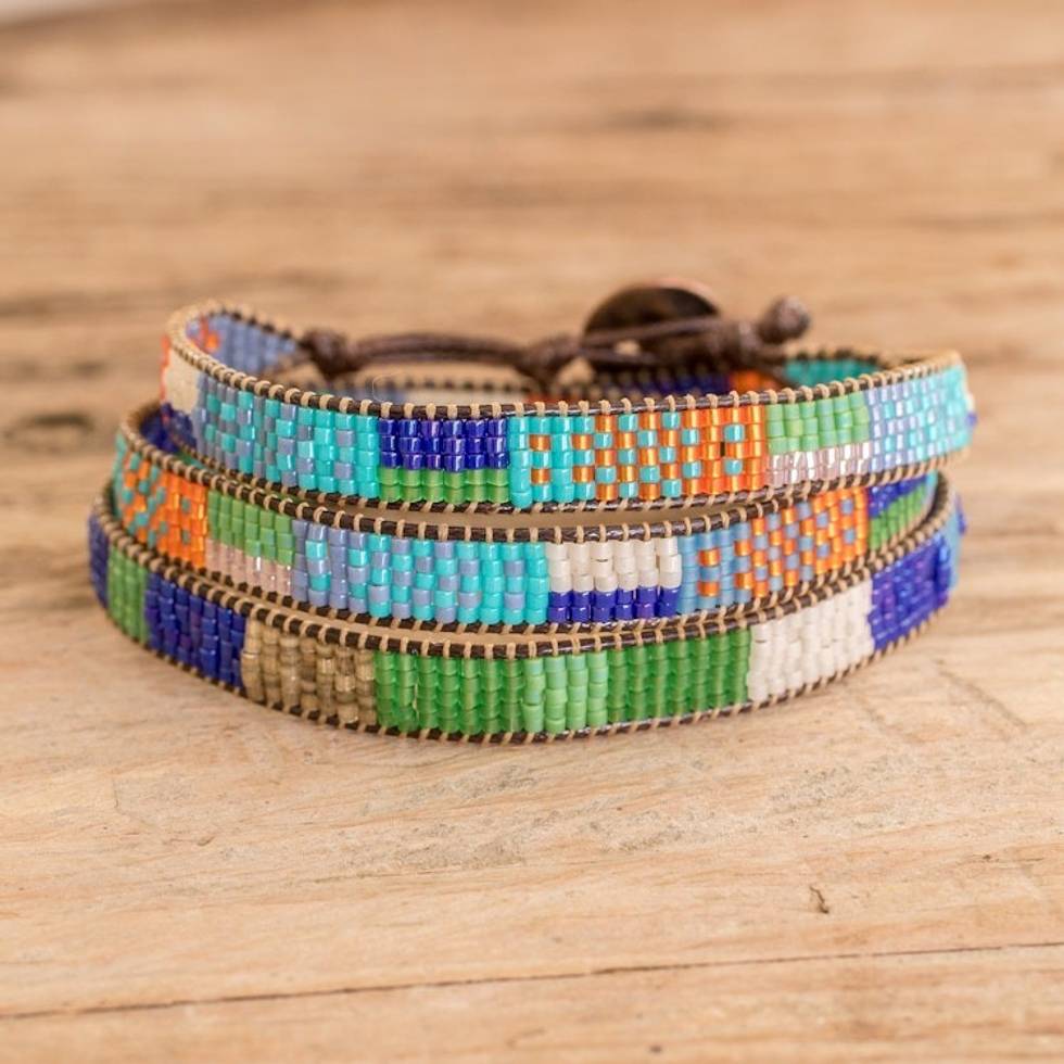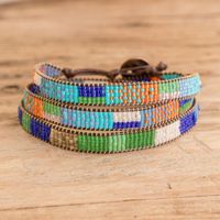 Handcrafted Glass Beaded Wrap Bracelet in Intense Colors 'Intense Mosaic' Item ID: 2669933614