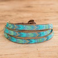 Handcrafted Glass Beaded Wrap Bracelet with Arrow Motifs 'Geometric Renovation'' Item ID: 2669934807