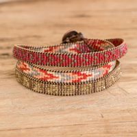Handcrafted Glass Beaded Wrap Bracelet with Arrow Pattern 'Geometric Direction' Item ID: 2671771970