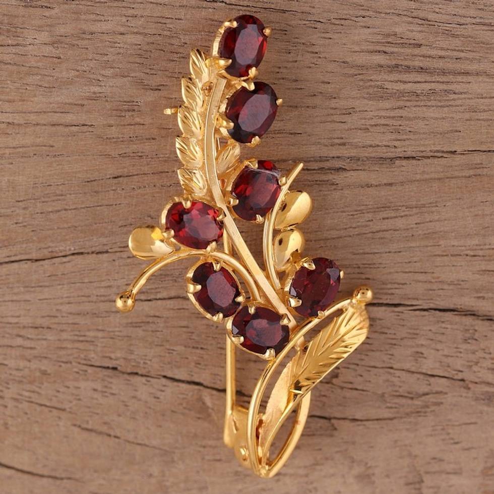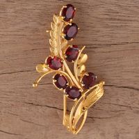 Handcrafted Gold Plated Silver and Garnet Floral Brooch Pin 'Gorgeous Scarlet' Item ID: 2671619858