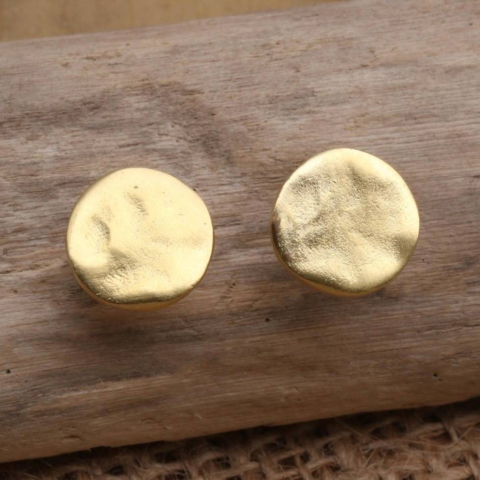 Handcrafted Gold-Plated Stud Earrings 'Kerupuk' Item ID: 2669922981
