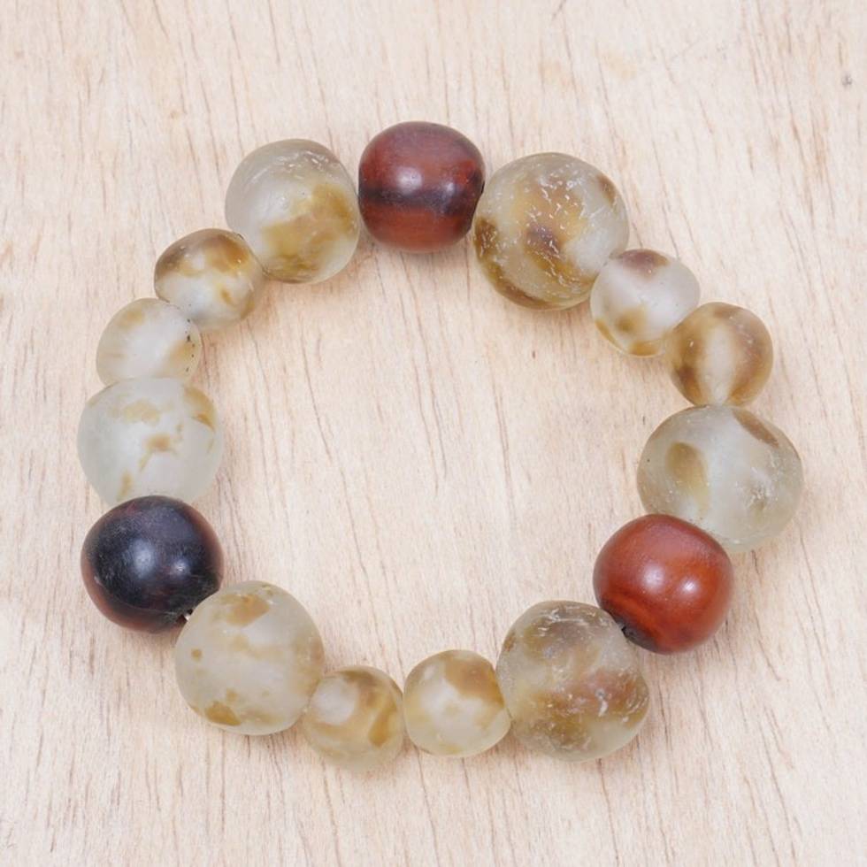 Handcrafted Green and Brown Beaded Stretch Bracelet 'Green Soul' Item ID: 2671804648