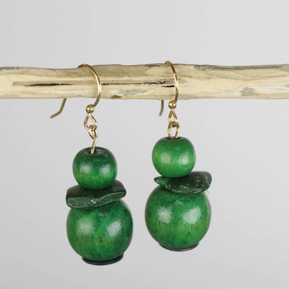 Handcrafted Green and Mighty Sese Wood Dangle Earrings 'Green and Mighty' Item ID: 2671801087