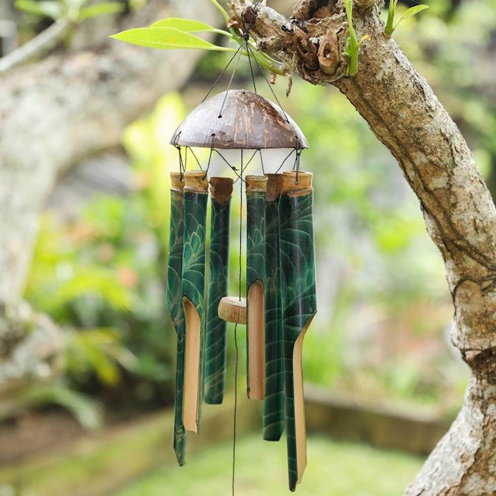 Handcrafted Green Bamboo and Coconut Shell Wind Chime 'Green Rhythm' Item ID: 2671764468