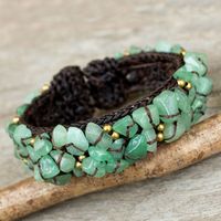 Handcrafted Green Quartz Crocheted Cuff Bracelet 'Woodland Morning' Item ID: 2671802047