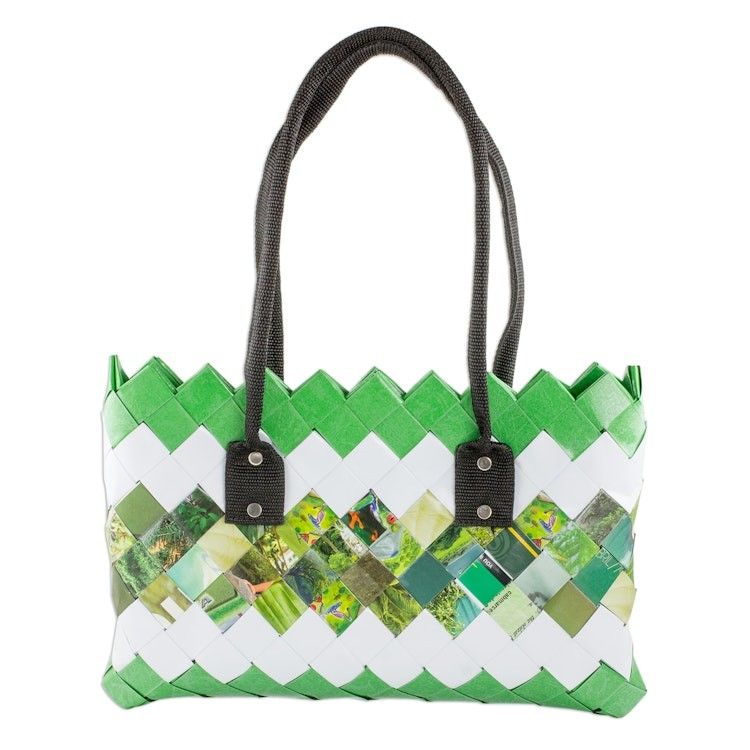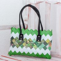 Handcrafted Green Recycled Magazine Paper Shoulder Bag 'New Fields' Item ID: 2671781036