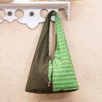 Handcrafted Green Striped Cotton Shoulder Bag from Java 'Green Lurik' Item ID: 2671763201