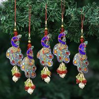 Handcrafted Hand Beaded Christmas Ornaments Set of 5 'Mughal Peacocks' Item ID: 2671794952