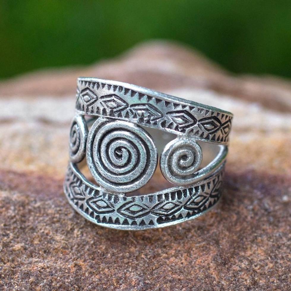 If you are trying to find that bold ring that chants beauty, beauty beauty....look no further Achara is so talented and has created yet another enchanting piece in "The Silver Sun." I also purchased the "Hill Tribe Sun." I wanted a silver cuff style ring, that I could wear on my middle finger and that made my hand pop with a sassy kind of elegance.....and so I had to buy two of Achara's cuff rings each unique in their own way. With the silver sun ring the design focuses on the front and the Hill Tribe Sun not only has design on front but on the back where the cuffs meet....what a fantastic idea n creation. I luv how the ring doesn't slide around, it literally hugs my finger securely and with comfort. Money well spent, truly a gorgeous style Achara thx U!!!!!