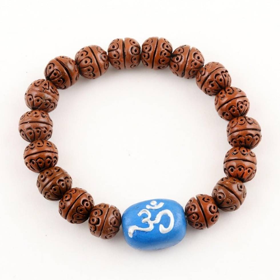 Handcrafted Indian Brown Blue Terracotta Unity Bracelet 'Omkara Unity' Item ID: 2671789386