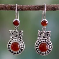 Handcrafted Indian Sterling Silver and Carnelian Earrings 'Fire Owl' Item ID: 2671794719