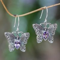 Handcrafted Indonesian Silver and Amethyst Earrings 'Enchanted Butterfly' Item ID: 2671702825