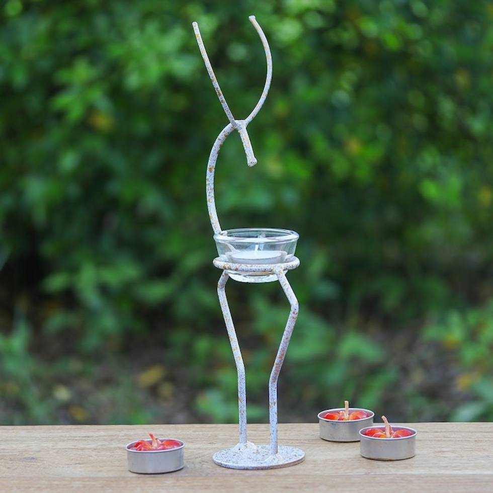 Handcrafted Iron Deer Tealight Holder in White and Gold 'Deer Splendor' Item ID: 2671798176