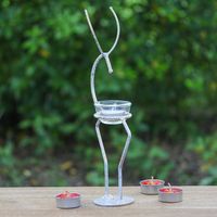 "Transform your favorite spot into a welcoming retreat of gentle radiance with this fascinating tealight holder shaped like an imposing deer. Expertly handcrafted from iron, the strikingly modern design showcases a blend of gold and white tones accentuated by a distinct antique finish. With a glass cup and a single tealight, this charming accessory designed by Thai artisan Narakorn Wongnitkorn imparts an inviting warmth and individual allure to your living space."