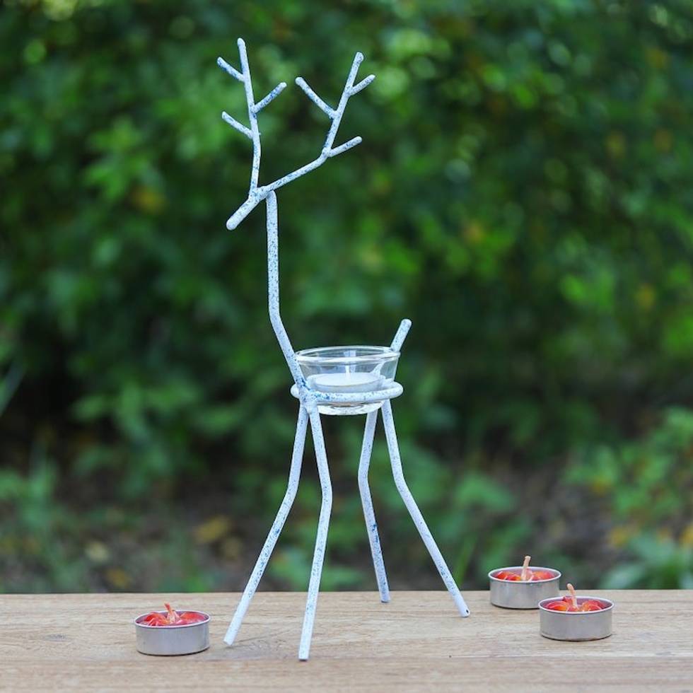 Handcrafted Iron Reindeer Tealight Holder in White and Blue 'Winter Reindeer in Blue' Item ID: 2671797742