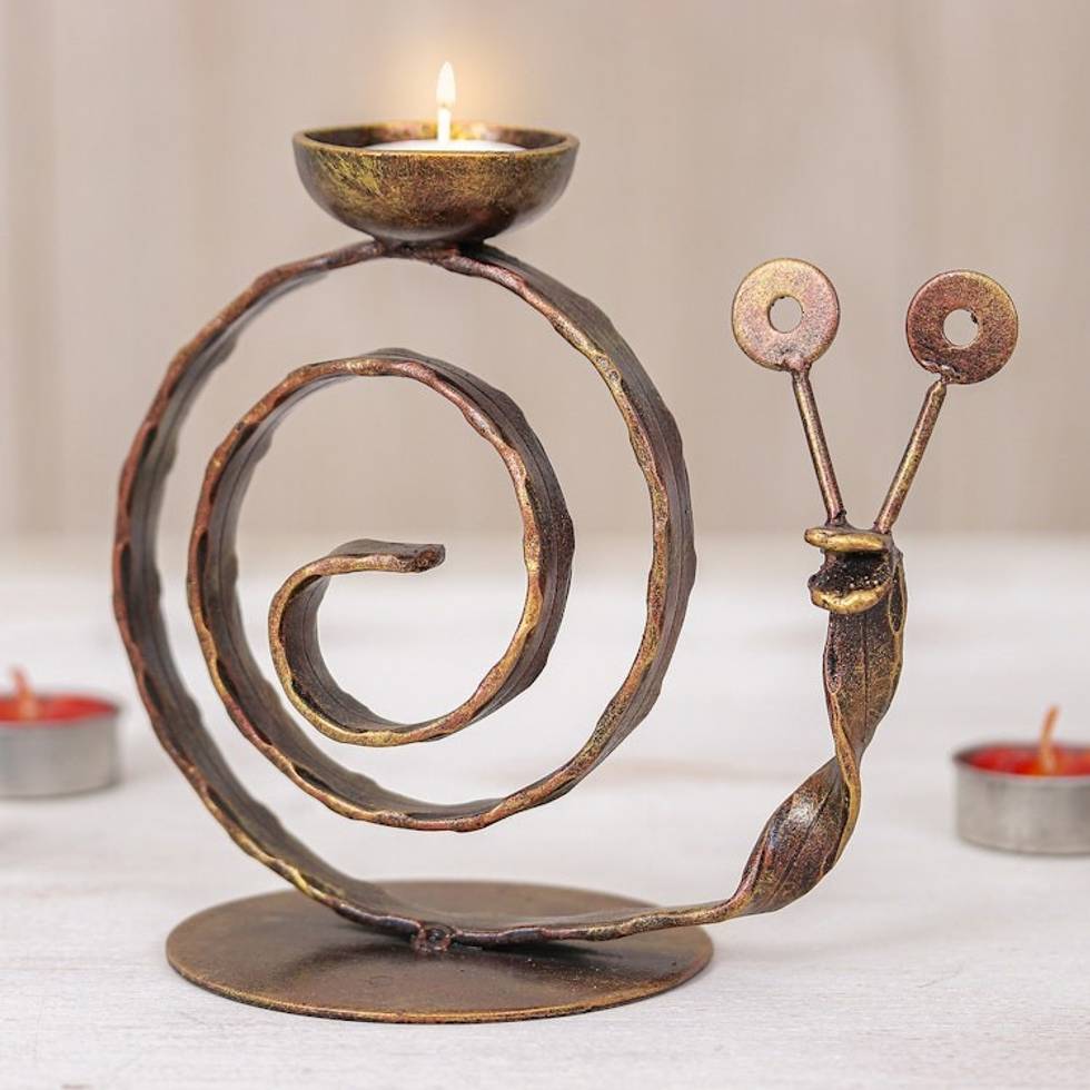 Handcrafted Iron Snail Tealight Holder in Copper Hue 'Happy Snail' Item ID: 2671797584