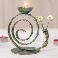 Handcrafted Iron Snail Tealight Holder with Antique Finish 'Happy Snail in Green' Item ID: 2671646726