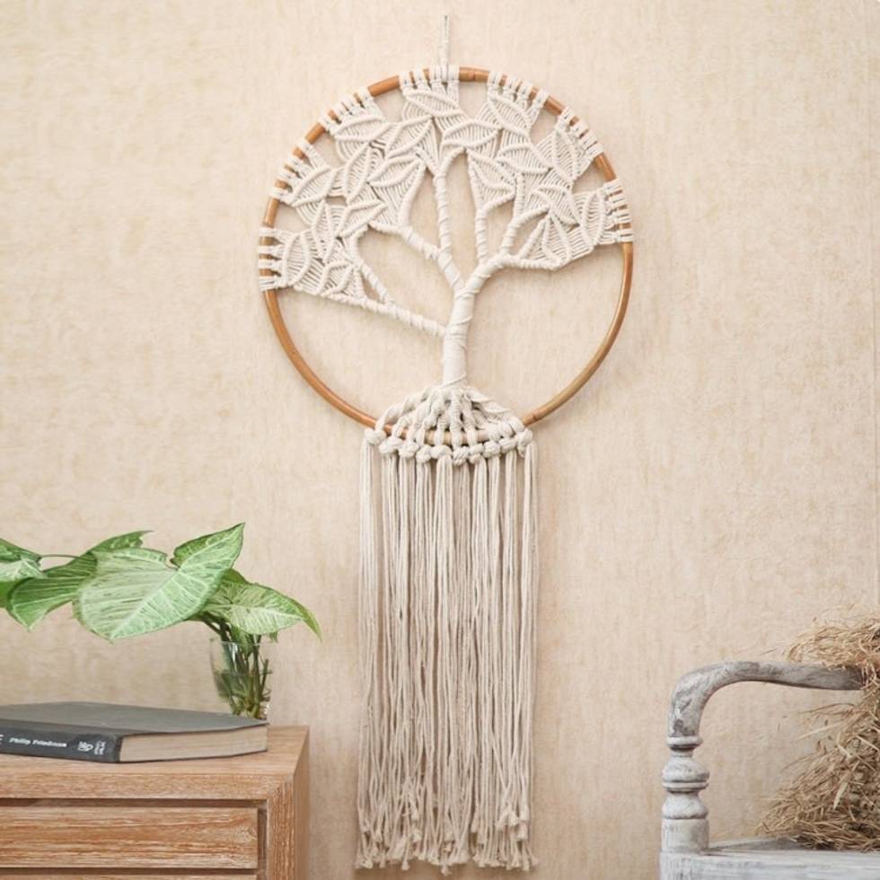 Handcrafted Ivory Macrame Tree Wall Hanging 'Deep Roots, Strong Branches' Item ID: 2671745047