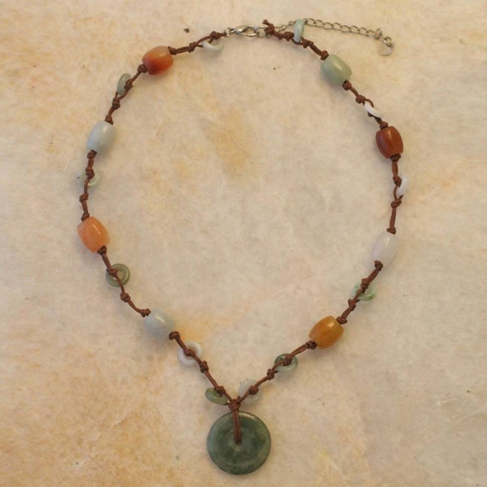 Lovely combination of pearls and jade, very feminine. I matched these with jade earrings of same shape as the pendant.Pearls are good quality and milky/shiny looking, not cheap.It is an unusual combination and very attractive