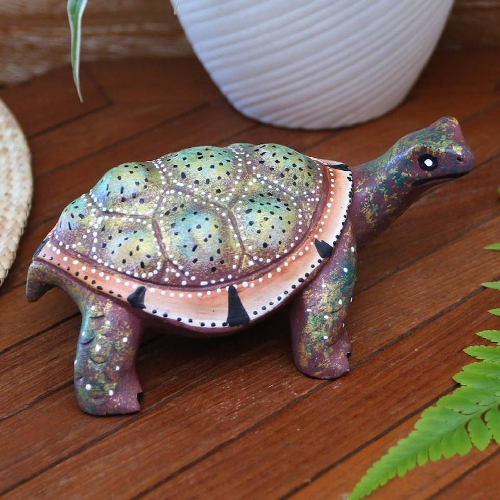 Handcrafted Jempinis Wood Turtle Statuette 'Rainbow Turtle' Item ID: 2671670124