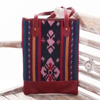Handcrafted Jepara Ikat Leather Accent Cotton Shoulder Bag 'Jepara Weave' Item ID: 2671736489