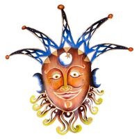 Handcrafted Jester Steel Wall Art in Blue and Warm Hues 'Mysterious Laughter' Item ID: 2671807625