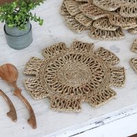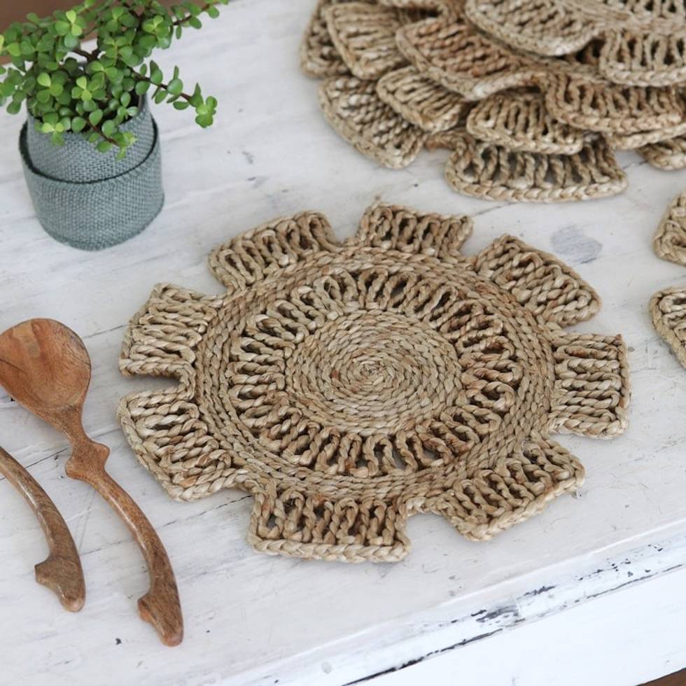 Handcrafted Jute Placemats with Floral Pattern Set of 6 'Flower Attraction' Item ID: 2671789033